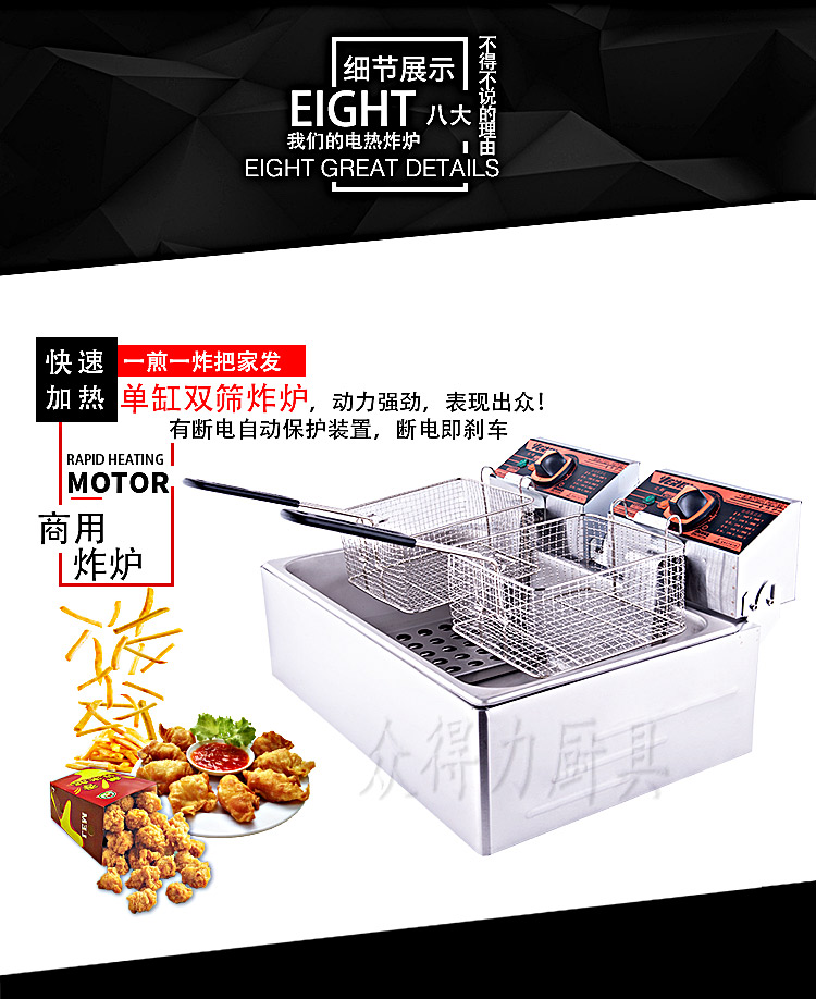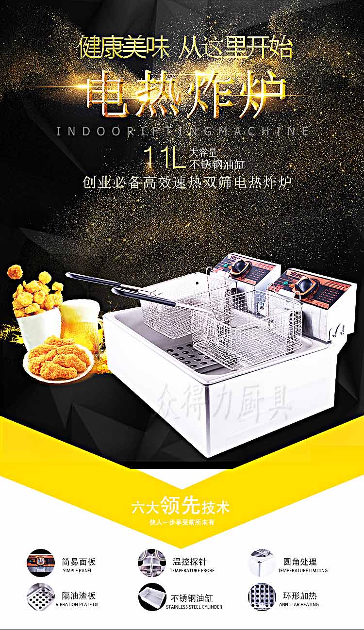 單缸雙篩電炸爐,小型油炸爐,油條機,贛州廚房設備采購電話0797-8284441,單缸雙篩油炸爐價格390元/臺
