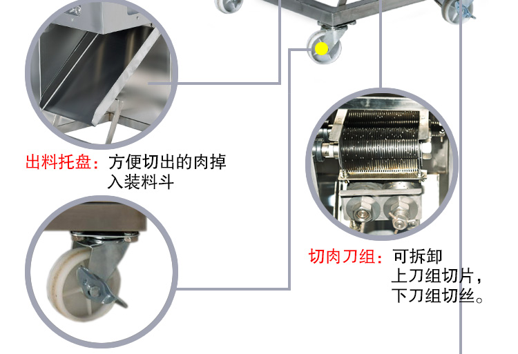 江西眾得力廚具有限公司生產銷售商用廚具、食品機械,承接中央廚房項目整體解決方案,肉類切割設備包括:絞肉機、切肉機、切丁機等,型號眾多,本產品為不銹鋼切肉絲機,2160型一次成絲機。價格8100元/臺