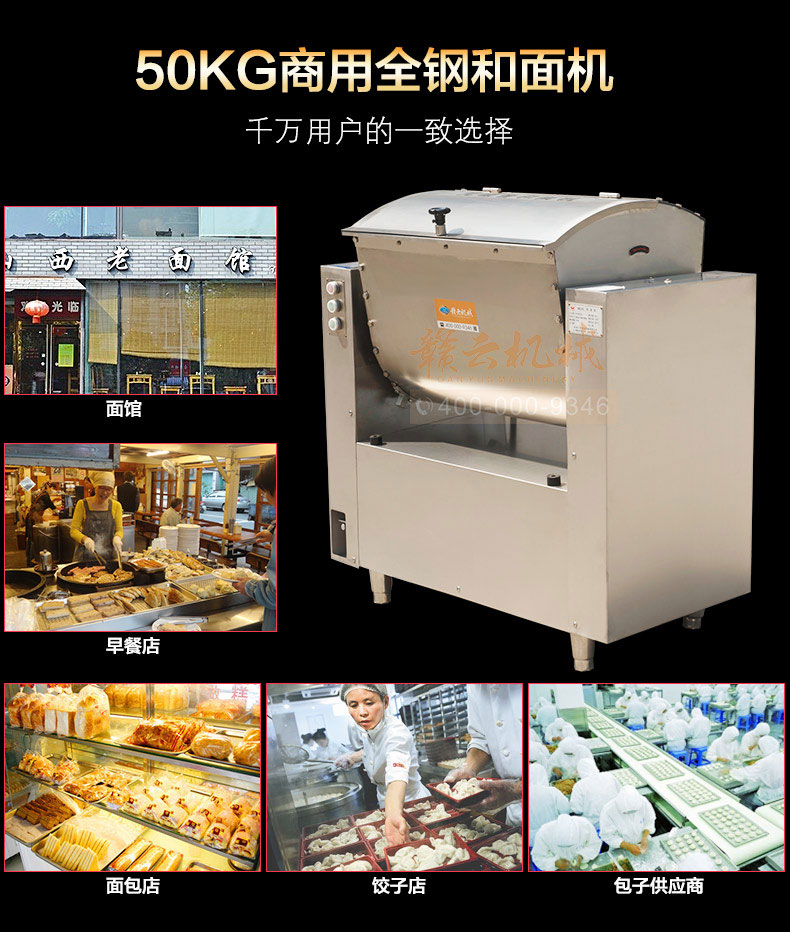 眾得力廚具為您提供商用和面機,米面加工設備,包子機,餃子機,壓面機,揉面機,打蛋機、發酵箱、面案工作臺,面點加工間整體解決方案,本和面機系列有15kg、25kg、50kg、75kg、100kg多個型號款式可供選擇。攪拌軸及攪拌桶均為食品級不銹鋼材質加工制作,工作聲音底,攪拌均勻,操作簡單