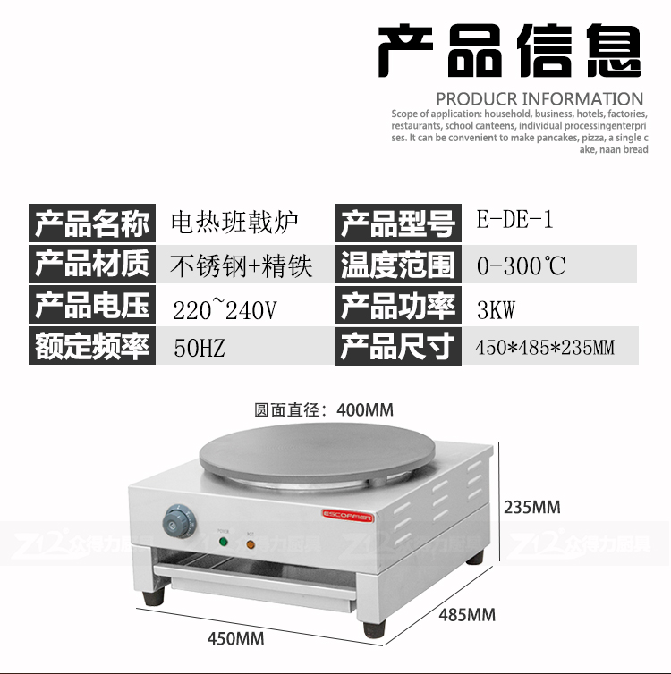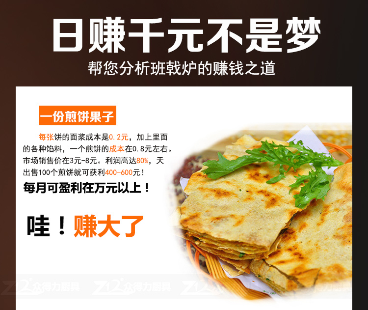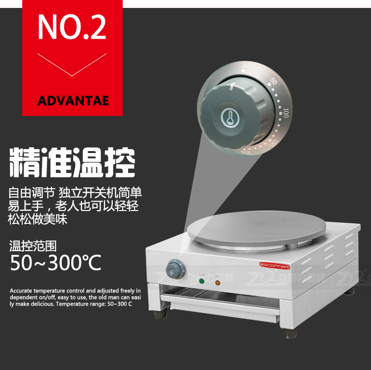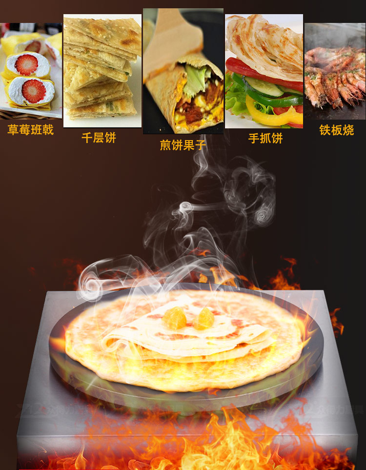 班戟爐是一種恒溫加熱,速熱快的美食設備,整機外殼采用優(yōu)質(zhì)不銹鋼材質(zhì),板材厚,加熱盤采用生鐵鍛造,表面光滑,食品級不粘涂層拋光處理,可加工制作各種煎餅。