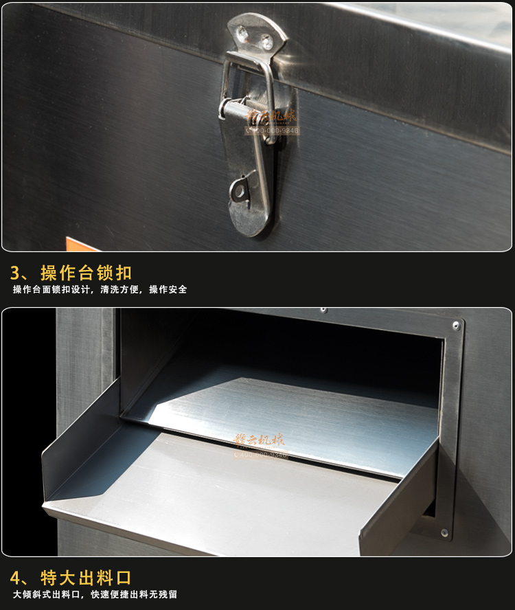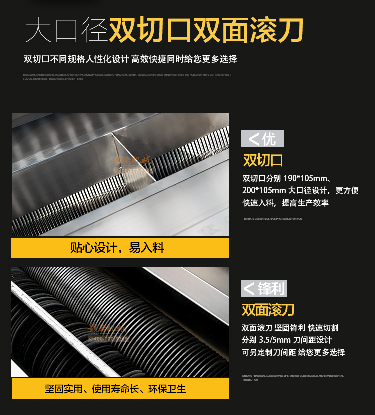 贛云2017款大型切肉機,工程款切肉片肉絲機,采用1.2mm304不銹鋼板材加工設計,配備3kw大功率純銅電機,380v工業用電,使得產品性能穩定,雙滾切刀設計,切肉效率高,雙規格切肉刀具組合,適合大眾需求。