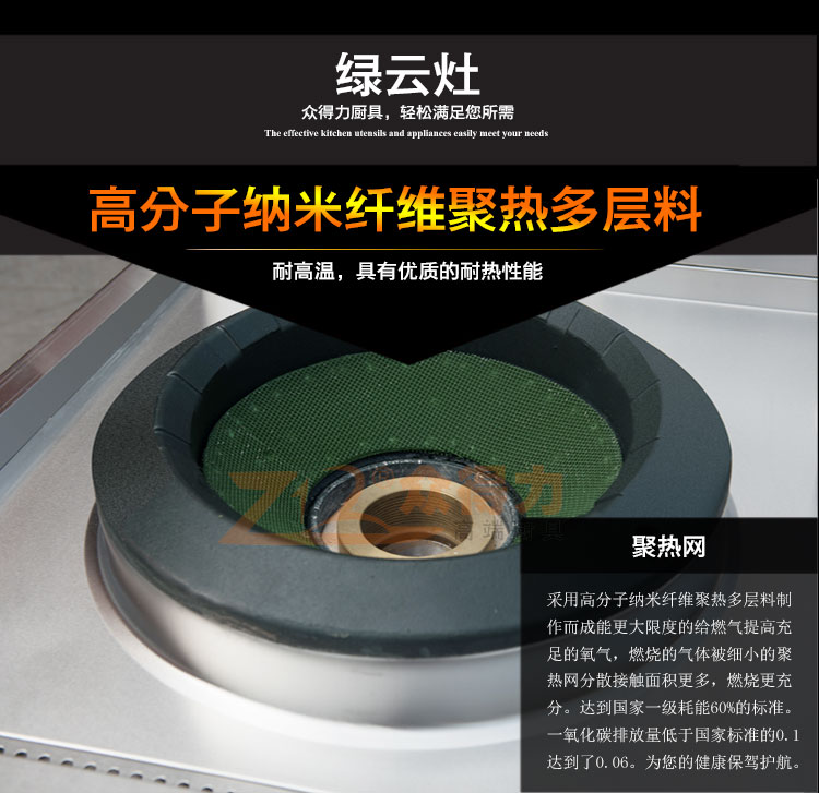 綠云灶一氧化碳排放少,熱效率高,炮臺式設計,方便清洗。獨特的聚熱網設計,大大提高了燃氣的利用率,更節能,環保。還具有智能顯示屏,可以讓您掌握每道菜的時間,操作簡單,不需要等待。