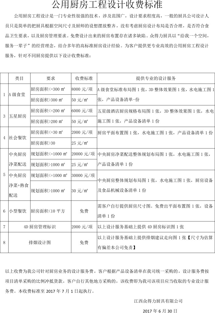 公用廚房工程設(shè)計收費(fèi)標(biāo)準(zhǔn)